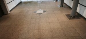 定期清掃だけでは蓄積してくる石床の汚れや黒ズミ除去の洗浄作業です。メンテ屋さんでも石の汚れ除去は難しく、薬剤や機材の選定、作業の進め方によって、かなり技術が必要な作業です。